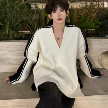 Trendy V-Neck Patchwork Sweater for Men
